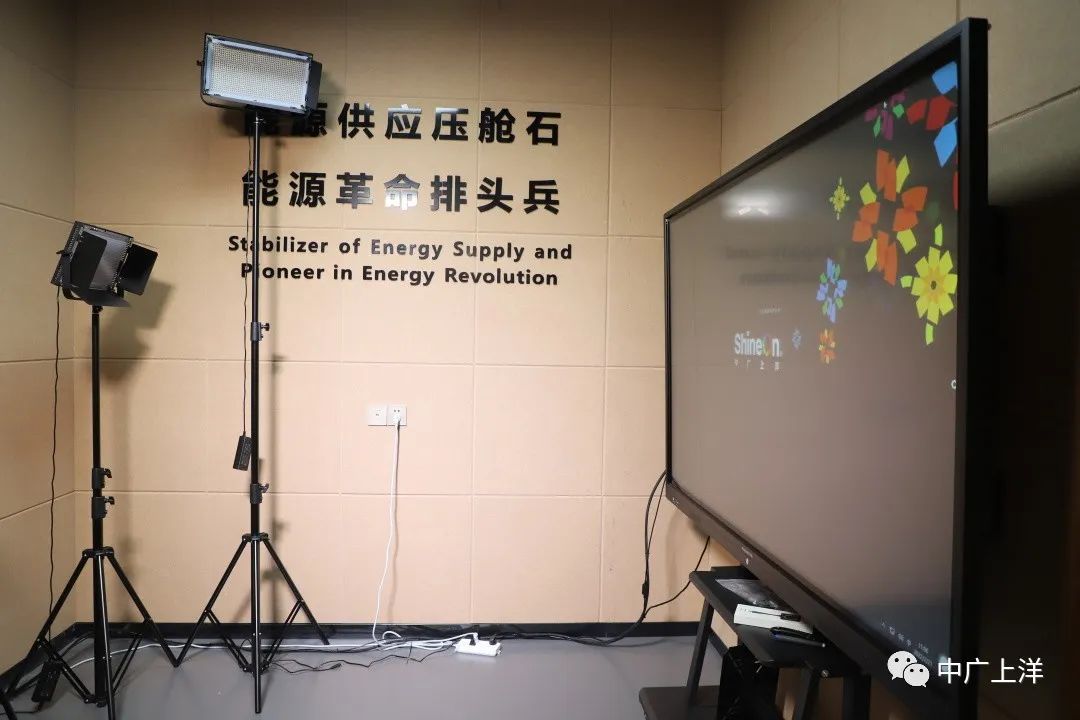 中广上洋为国家能源集团打造的精品直播间,运用广播级的视频抠像技术完美的把人物和课件融合在一起,满足集团的各项直播活动。整个直播环境搭建非常简单,仅需5件设备,利用原有的一块触摸一体机、一台摄像机、一支麦克风,一块反馈屏,再加一台金课工场就完成了直播间的搭建。